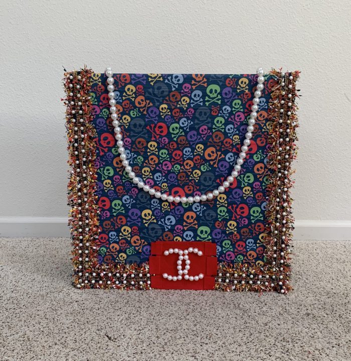 Of course, we did what any Halloween costume loving duo would do and #discussed! I wrote down a list of a few different options of who we could be, what we could make, and looked at a bunch of pictures. After weeks of wavering back and forth between options, we decided on Karl Lagerfeld and a Chanel Boy Bag.