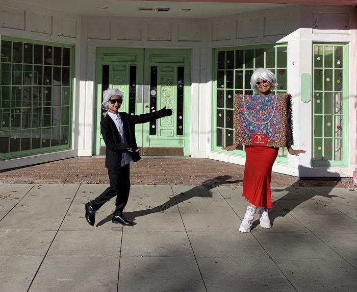 When it comes to holidays, we absolutely love Halloween. Besides all the cute decorations and yummy goodies, the best part of spooky season, in our opinion, is dressing up. In fact, ever since we started Mommy and Me themed costumes a few years ago, it has become a fun family tradition. We start talking, planning, and making our costumes months in advance. In the past, we dressed up as a Cop & Robber, as a Baker and Cupcake, as a Train Engine and Coal Car, and as a Hamburger and French Fries! Last year, we decided to be the iconic creative director, Karl Lagerfeld and a limited-edition Halloween Chanel Boy Bag!